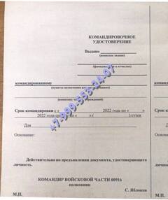 Заказать командировочное удостоверение военнослужащего в Асбесте можно и по иным причинам, например, необходимо срочно ехать на учения или в зону боевых действий. В таком случае следует обращаться к руководству с заявлением. Если человек потерял, или испортил документы, он может обратиться в нашу компанию. Купить командировочное удостоверение военнослужащего с доставкой мы предлагаем недорого.